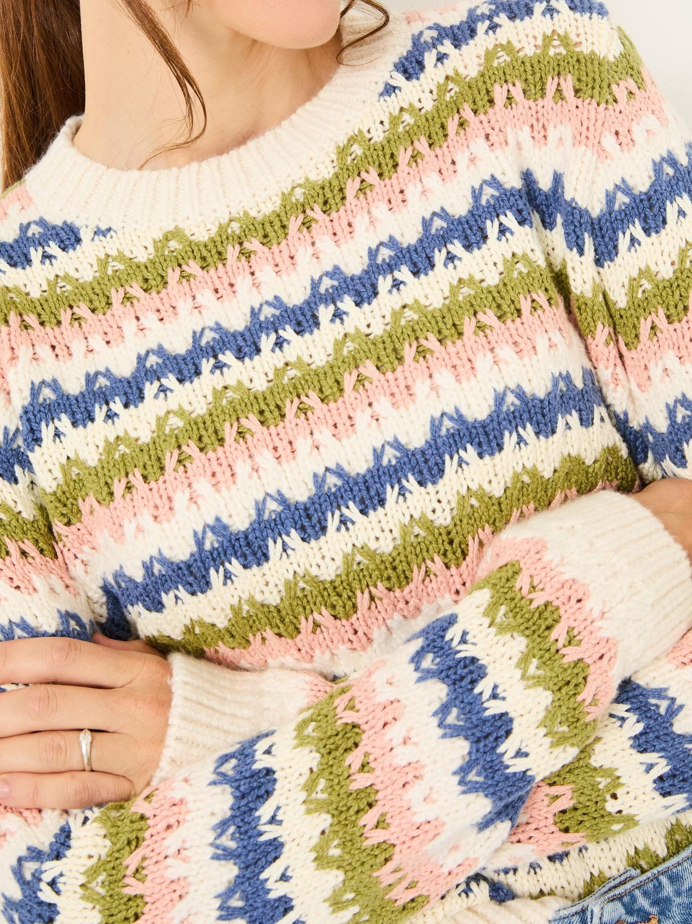 Color Stripes Knitted Pattern Jumper 1378186
