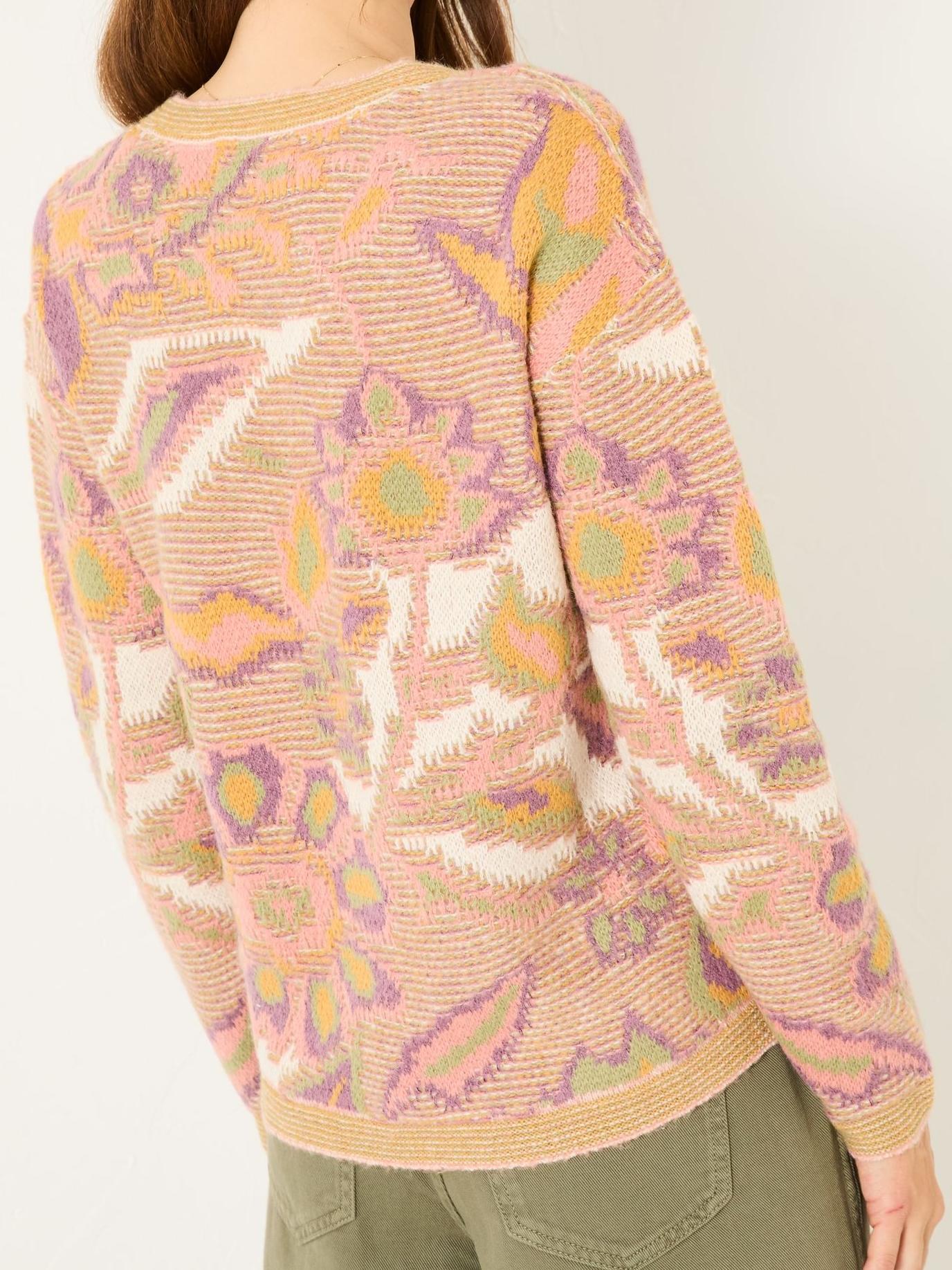 We bet you don't have a jumper like this already in the wardrobe. Featuring a bold floral pattern, this crew neck jumper is a stand-out layer that'll keep you warm and looking stylish from the moment you pull it on. Even better – it has a touch of wool in the fabric for even more cosiness.